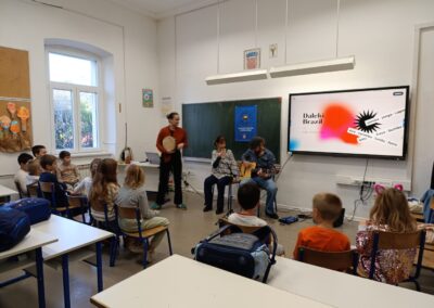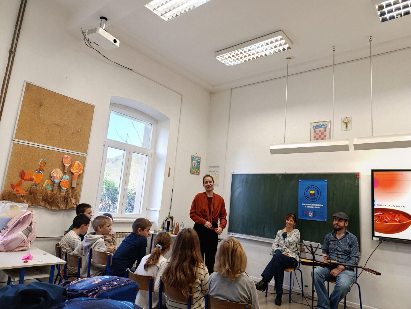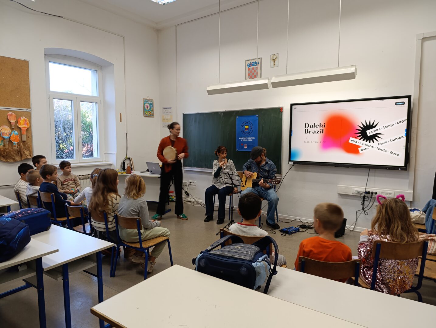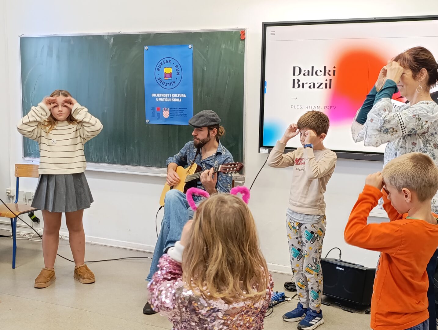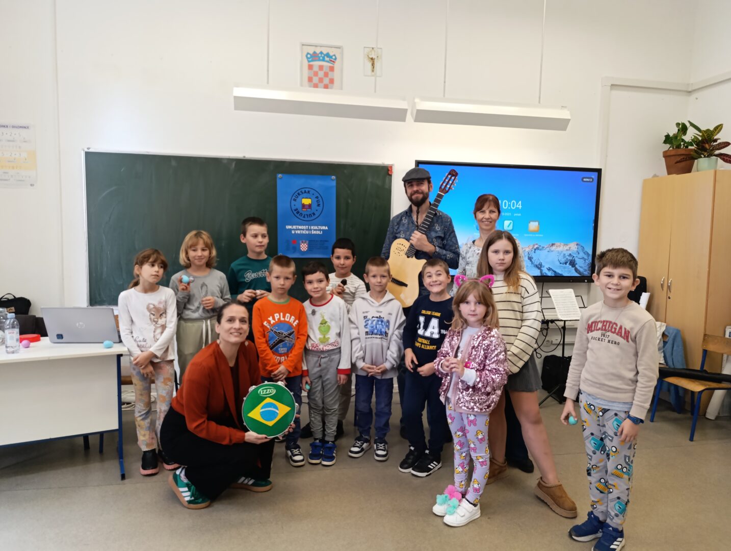 “Ruksak (pun) kulture” ovaj je put razveselio učenike 1. – 4. razreda iz matične škole u Janjini. Naši su učenici imali priliku sudjelovati 24. 10. 2025. na glazbenoj radionici “Ritam je bitan” koju su proveli članovi grupe Bossa Banda. Uz zvukove brazilske glazbe, učenici su upoznali Brazil i njegovu kulturu, a posebno vrste ritma u brazilskim pjesmama. Učenici su imali zadatak svirati pomoću glazbenih šuškalica te su pokazali izvrsno ritmičko umijeće. Osim sviranja, zabavili su se i plesom uz brazilski ritam te zaključili da je radionica bila izvrsna te jedva čekaju sljedeću. Hvala puno članovima Bossa Bande na izvrsnoj radionici te se veselimo sljedećem susretu.